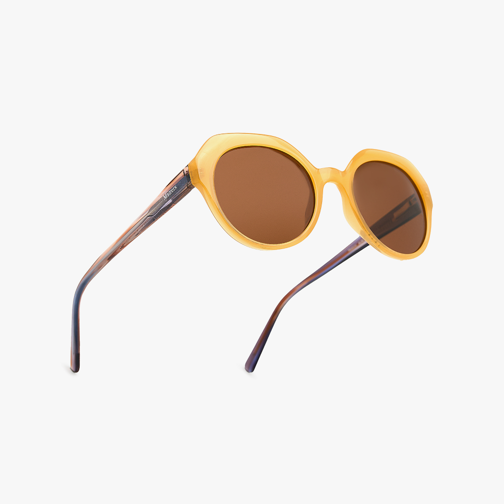 Cuando la luz surge poco a poco y los colores despiertan, transmite una mirada fresca y luminosa. La montura en tono amarillo, junto con las lentes cálidas, acompaña esa sensación de claridad suave propia de las primeras horas del día.